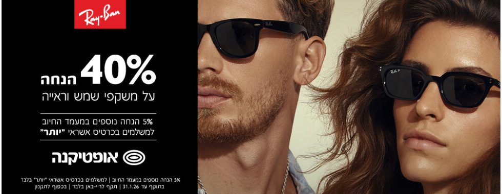 40% הנחה על משקפי שמש וראייה ריי באן